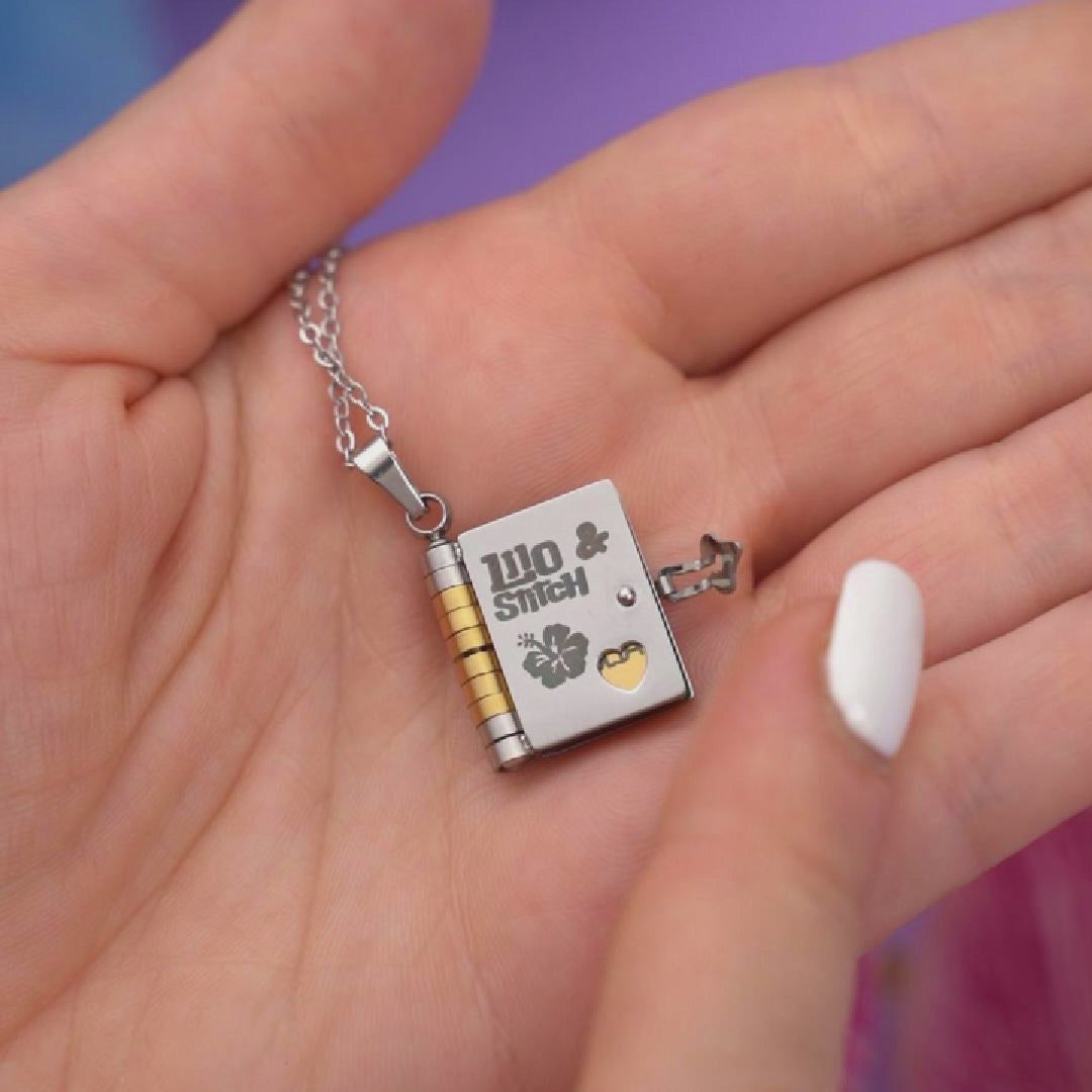 Collana a forma di libro ispirata al Film Lilo & Stitch.